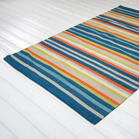 Klassischer Flickenteppich aus 100% Baumwolle.