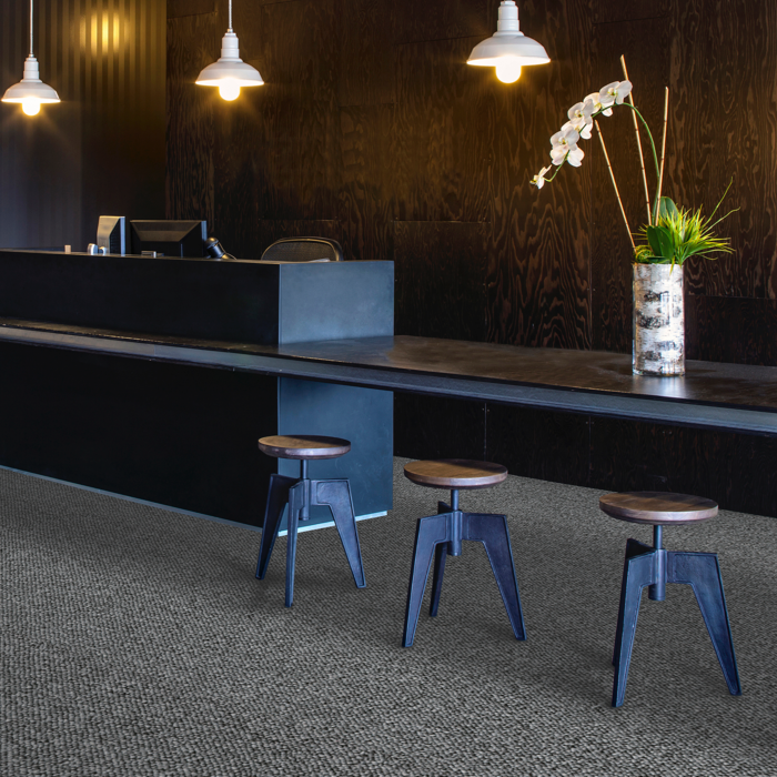 Moderner Teppich / Teppichboden, ideal fĂŒr öffentliche Bereiche. Coburn hat ein stilvolles monochromes Design, das in die meisten Umgebungen passt. Die Matte besteht aus 100 % Nylon, was sie unglaublich strapazierfĂ€hig macht. Der dĂŒnne Schlingenflor macht den Teppich angenehm zu begehen und zudem pflegeleicht.