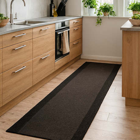 Flachgewebe-Flurteppich mit klarer Formgebung.
