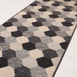TeppichlĂ€ufer mit elegantem Hexagonmuster. Er ist hergestellt aus robustem Nylon und hat eine gummierte Unterseite, damit er sicher auf dem FuĂboden liegt.