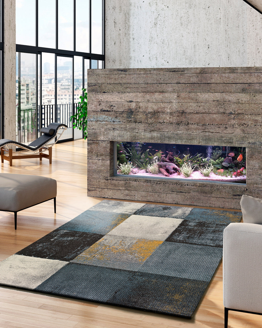 Adra Patchwork ist ein dicker und gemĂŒtlicher Teppich, der Komfort und Stil vereint.