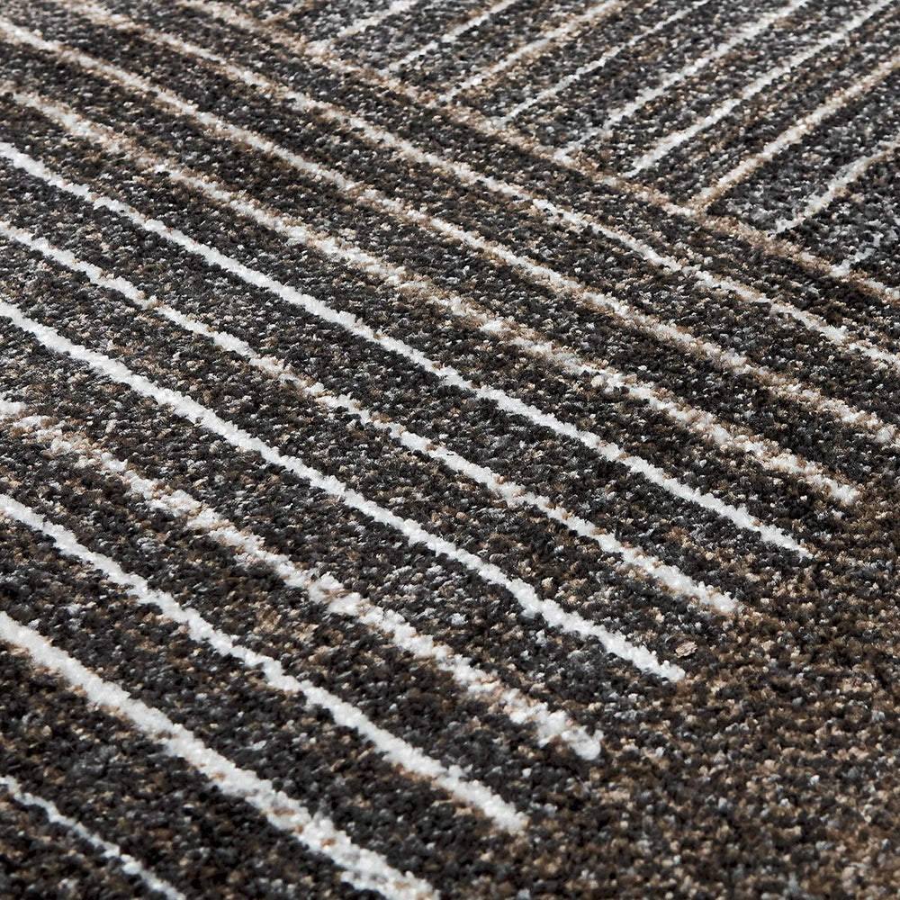 Verleihen Sie Ihrem Zuhause ein modernes und harmonisches Ambiente mit diesem stilvollen Teppich. Das grafische Muster in dezenten Beige- und Brauntönen schafft ein ausgewogenes Gesamtbild, das sowohl zu klassischen als auch modernen Einrichtungen passt. Das strukturierte Design des Teppichs verleiht dem Raum Tiefe, ohne aufdringlich zu wirken.